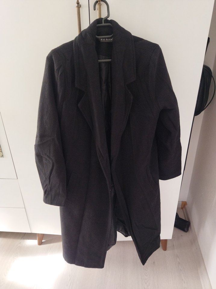 Düğmeli, siyah süet hamile ceketi, keskin yaka ve ince oturan tasarımıyla dikkat çeker. Askılı kollu, baskılı gotik tarzda, günlük kullanıma uygundur.
