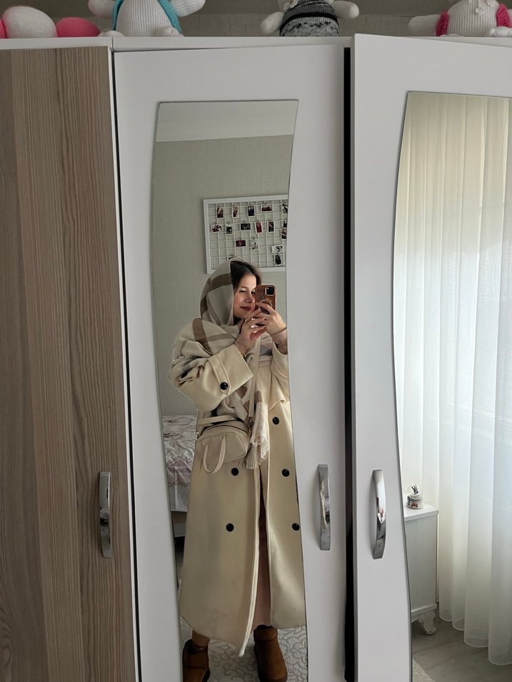 Krem renkli, uzun kaşe kaban astarlıdır. Standart bedendir
