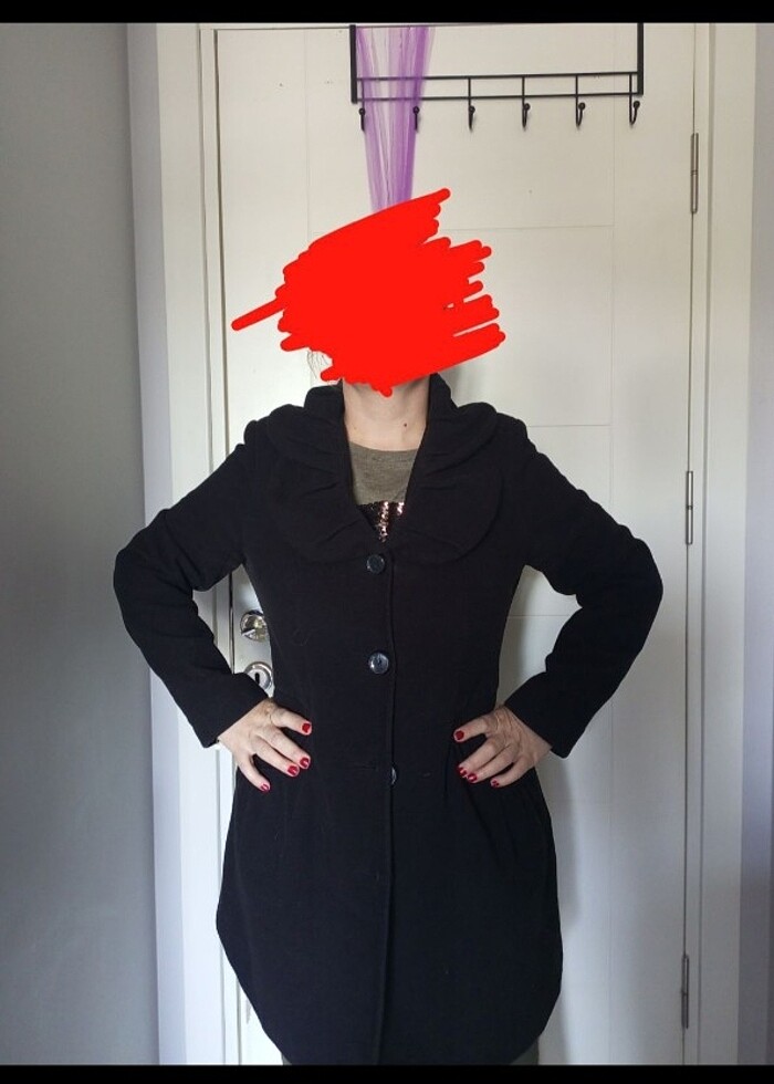 Diz boyu , düğmeli ,yaka detaylı,cepli.Sorunsuzdur.