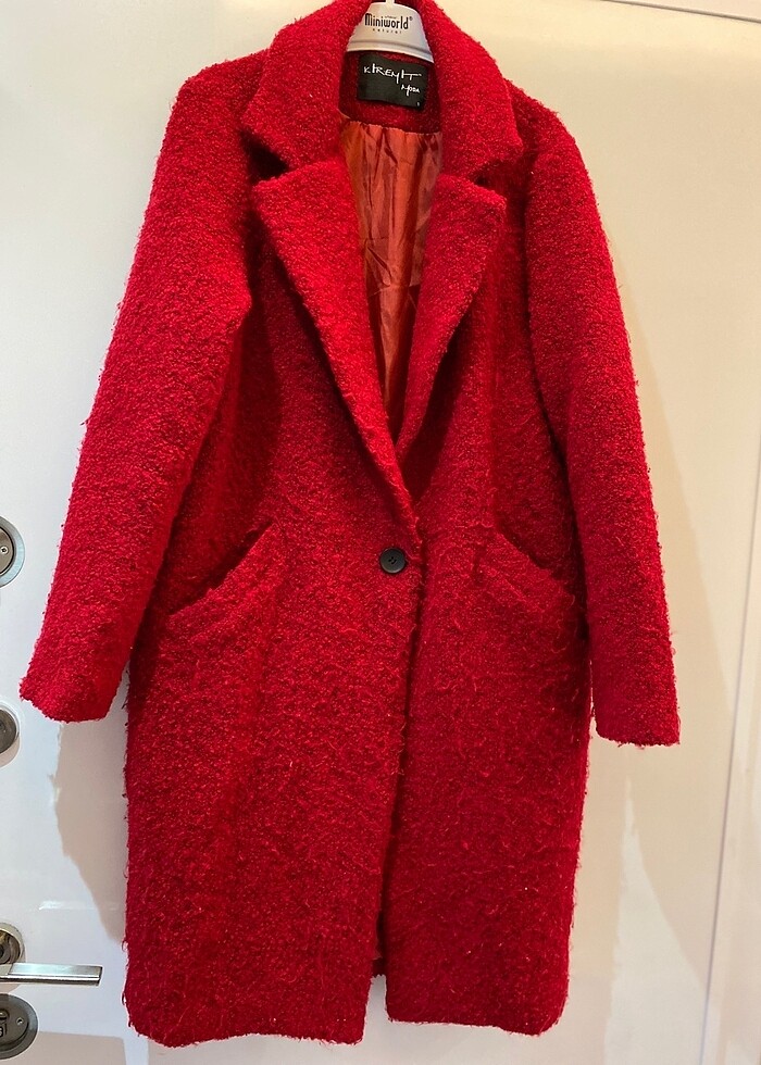 İçi astarlı kaban kırmızı renk tek düğmeli