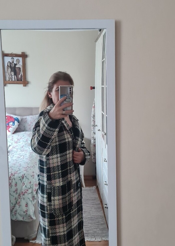 Kumaşı yumuşak astarlı desenli kaban. Benim boyum 165. 57 kiloyum .