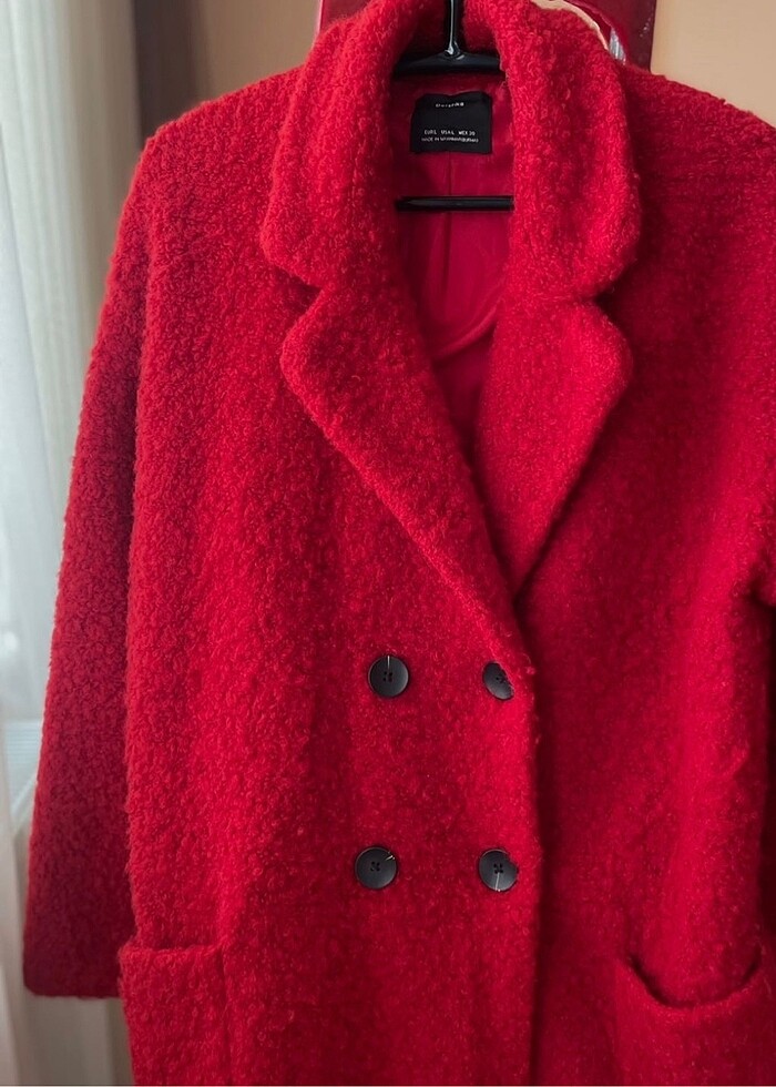 İçi astarlı çok fazla sıcak tutuyor. Çok az giyildi. Eski sezon. Rengi kırmızı bordo arası bir tonda.