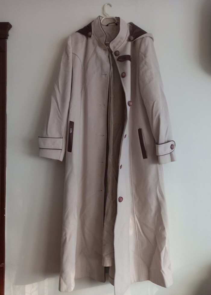 Kapsonlu kaban kalın bej rengi kahveli 38 beden kaliteli kumaş hic kullanılmadı yeni ürün