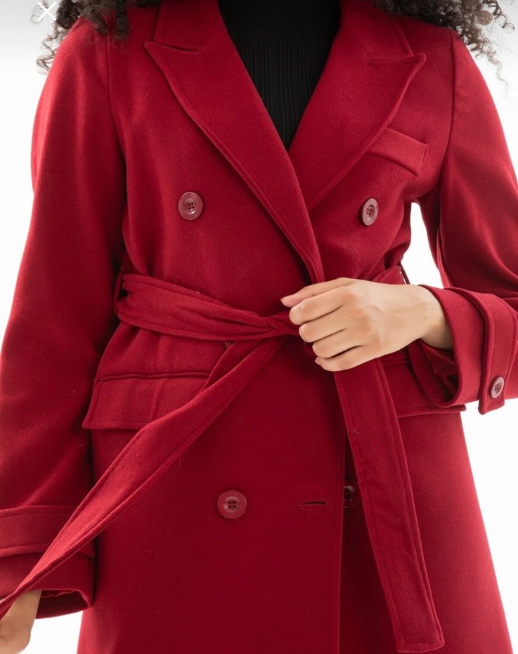Etiketli üründür. Marka: Pitti sm ve ml bedenleri vardır. Kaşe kumaştan üretilmiştir. %80 akrilik, %20 yün içerir. Sıcak tutar. Uzunluk 118-120 cm Kuşaklıdır. 2 adet cebi vardır. Kırmızı renk.