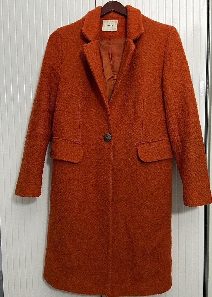 Tek düğmeli cepli arkadan yırtmaçlı kaban. İyi durumda