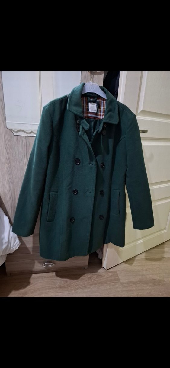 Koyu yeşil kaban. Hiç bir sorunu yoktur yeni gibidir. Xxl beden fakat ben 40 bedenken kullandım.