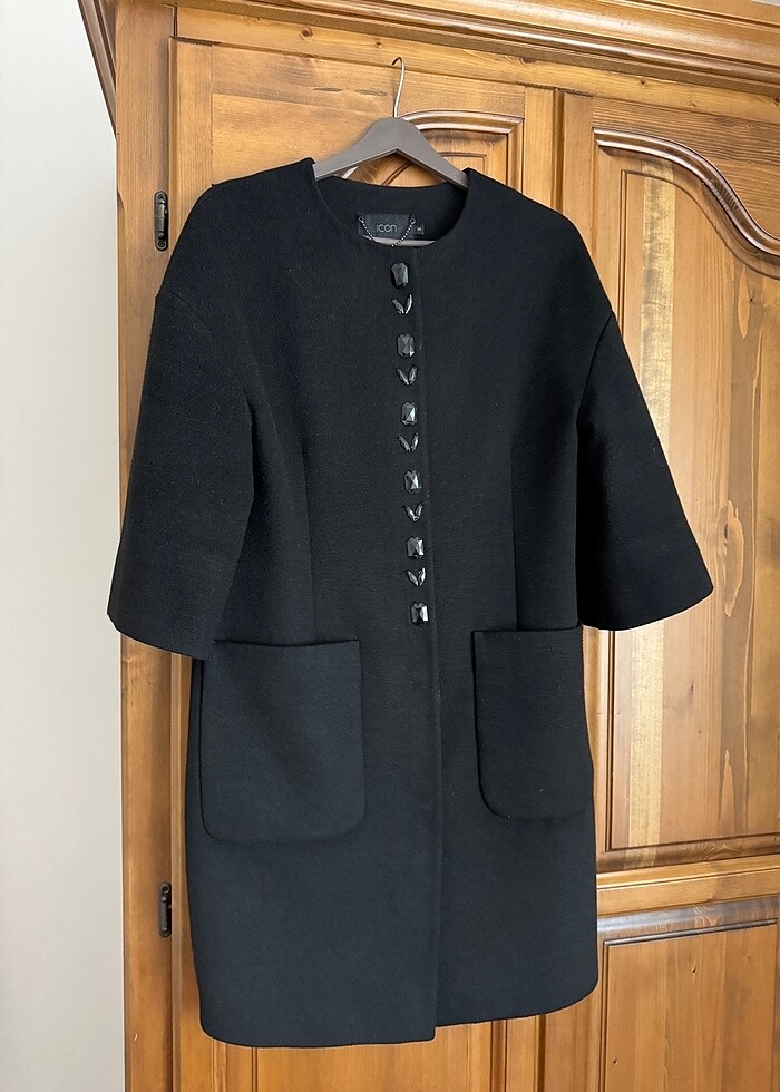 İcon marka fakir kol kaban. Önünde taş detayları mevcut. Çıtçıt kapama ile önü kapanmaktadır.