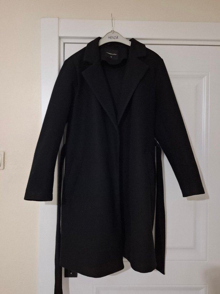 Siyah uzun klasik kaban, kuşaklı bel ve yaka detayıyla şık ve zamansız bir görünüme sahiptir. Uzun kollu ve yan ceplidir. 1.55 boy 54 kiloyum üzerimdeki duruşunu ekledim. Fotoğraflardaki gibi hafif bir tüylenme var onun dışında sorun yok.
