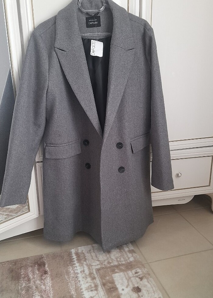 Kaşe urun gry renk duğmeli cepli astarli kaban ceket tarzinda urun etiketli urundur boy 80 44 de uyumludur.