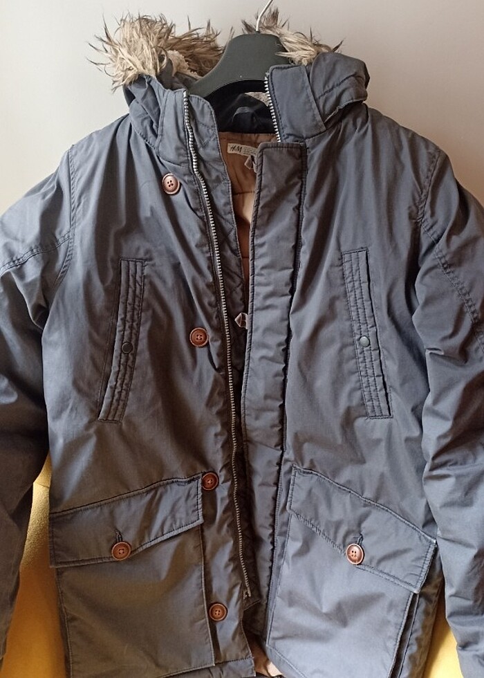 Çok temiz kullanıldı, içi dışı pırıl pırıl cepli kaban, mont. 13-14 yaş için boyundan arka uzunluğu 80 cm. Kol altlarından 56 cm. Kalça kısmının altına kadar, sıcacık tutuyor. İçi yumuşacık, ayrılabilir şapkalı.Kız ve erkek çocuk için.antrasit gri #h&m #lacoste #mango #polo #mavijeans #uspolo #antrasit #gri #sapkali