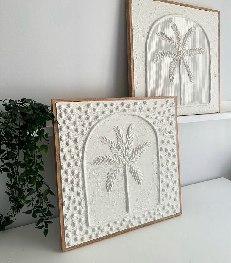 Kabartmalı Beyaz Palmiye Duvar Tablosu