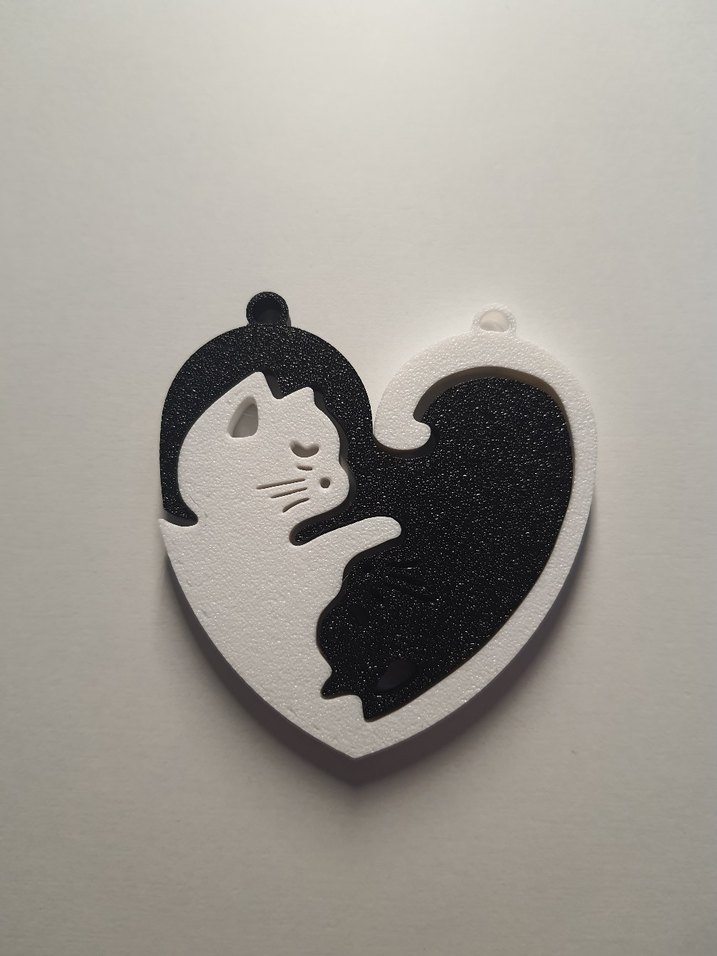 Kabartmalı Siyah Beyaz Kedi Anahtarlık