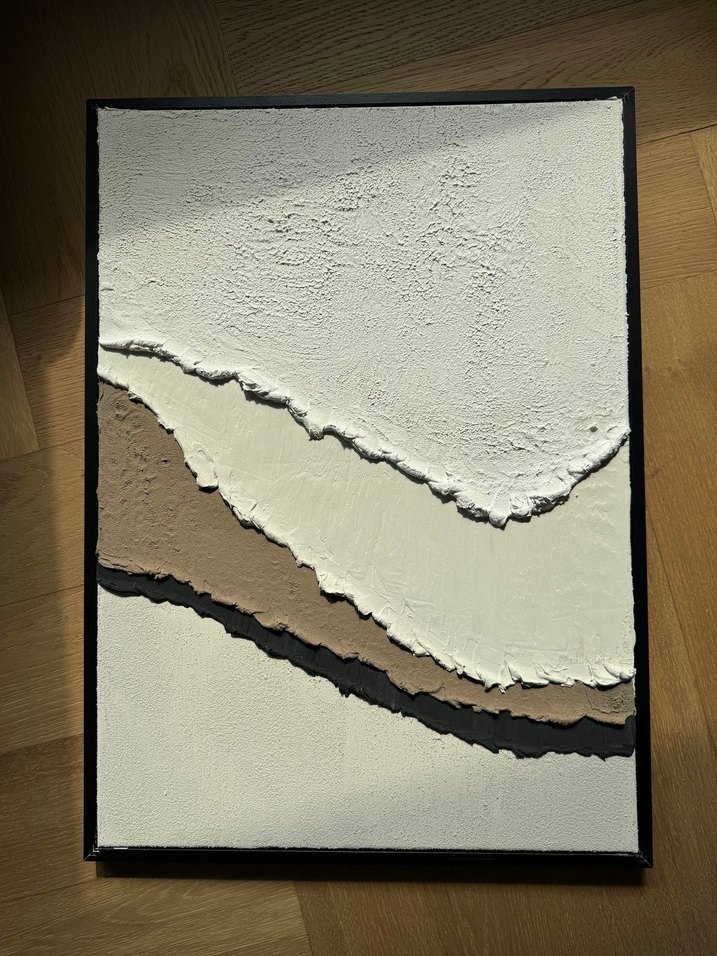 Kabartmalı Soyut Beyaz ve Kahverengi Tablo
