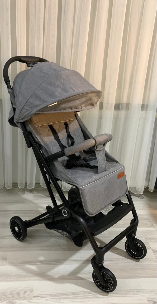 Hiçbir sorunu yoktur. Sıfır ayarındadır. Gri renkli bebek arabası, katlanabilir tasarıma, tente ve emniyet kemerine sahiptir. Ön bar ve saklama sepeti günlük kullanım için uygundur.