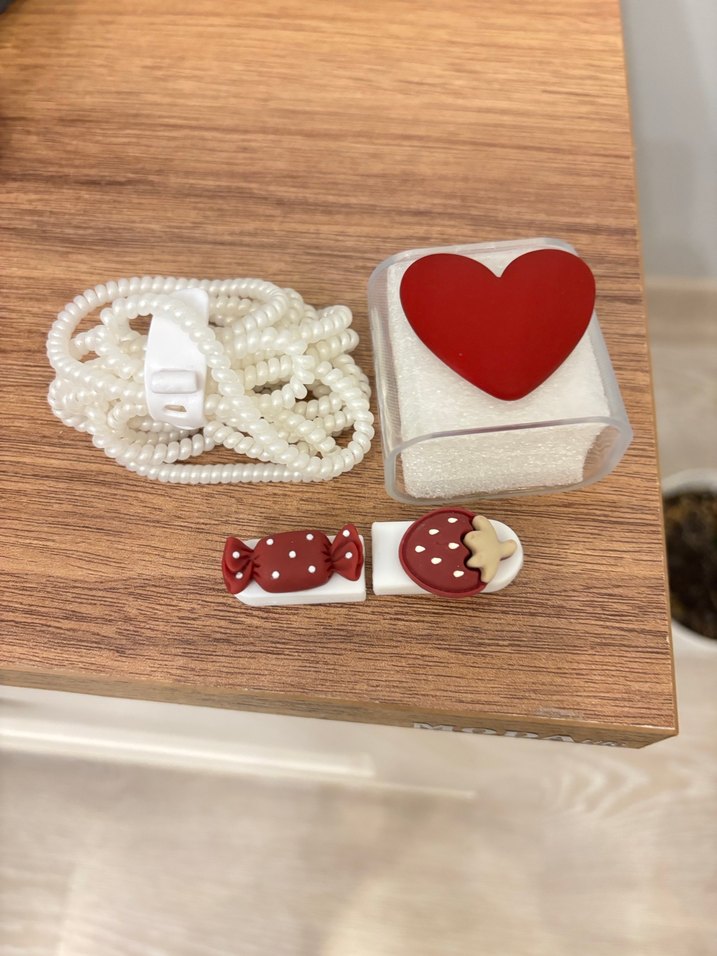 Boncuklu beyaz aksesuarlar, nakış desenli ve kırmızı kalp ile şeker detaylı bohem tarzda. Retro ve hippie görünüm için uygun.