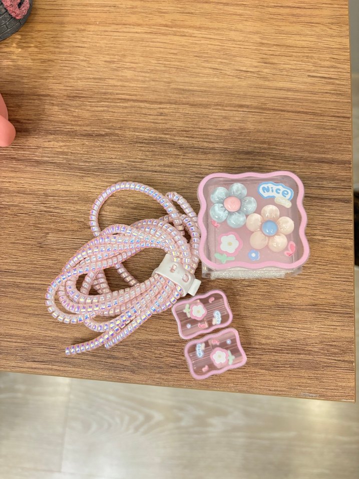 Pembe elastik saç aksesuarları seti, bohem tarzda pastel tonlarda bağlama ve toka içerir.