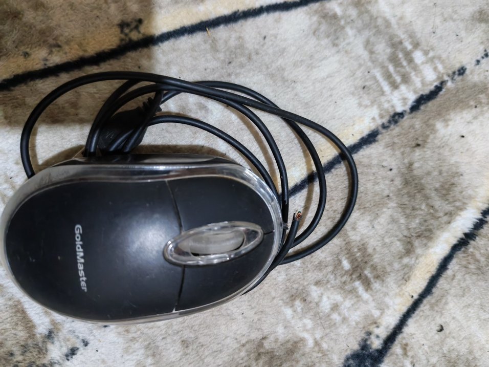 Kaydırma tekerlekli, kablolu gri bilgisayar mouse'u, kablosu hasarlı. ️