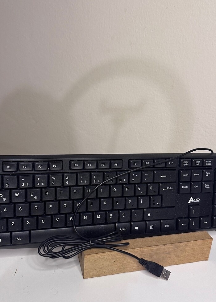 Sorunsuz çalışan sessiz ince kablolu klavye kasa köşesinde küçük kırık var hiçbir şeye engel değil.
