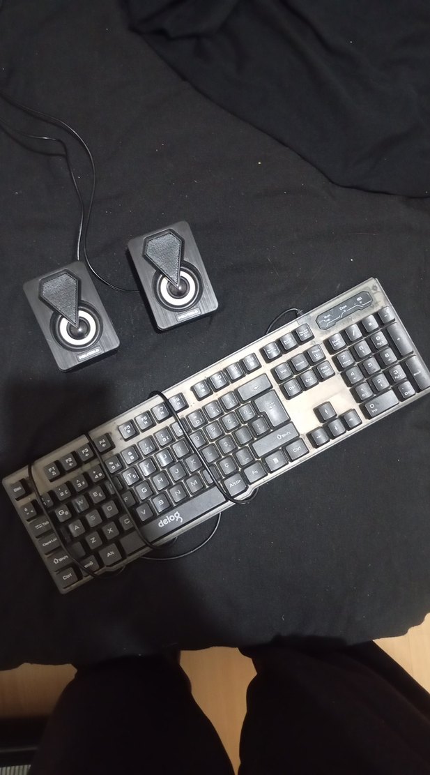 Kablolu, koyu gri renkli standart QWERTY düzeninde klavye ve iki joystick kontrol cihazı seti. Sayısal tuş takımı ve ek fonksiyon tuşları bulunur. ⌨️ klavye delil marka hoparlör polygold