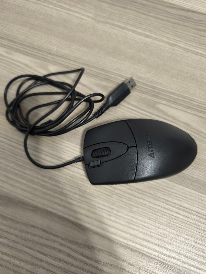 A4 tech marka USB bağlantılı, kaydırma tekerlekli siyah kablolu bilgisayar mouse çok az kullanılmıştır.
