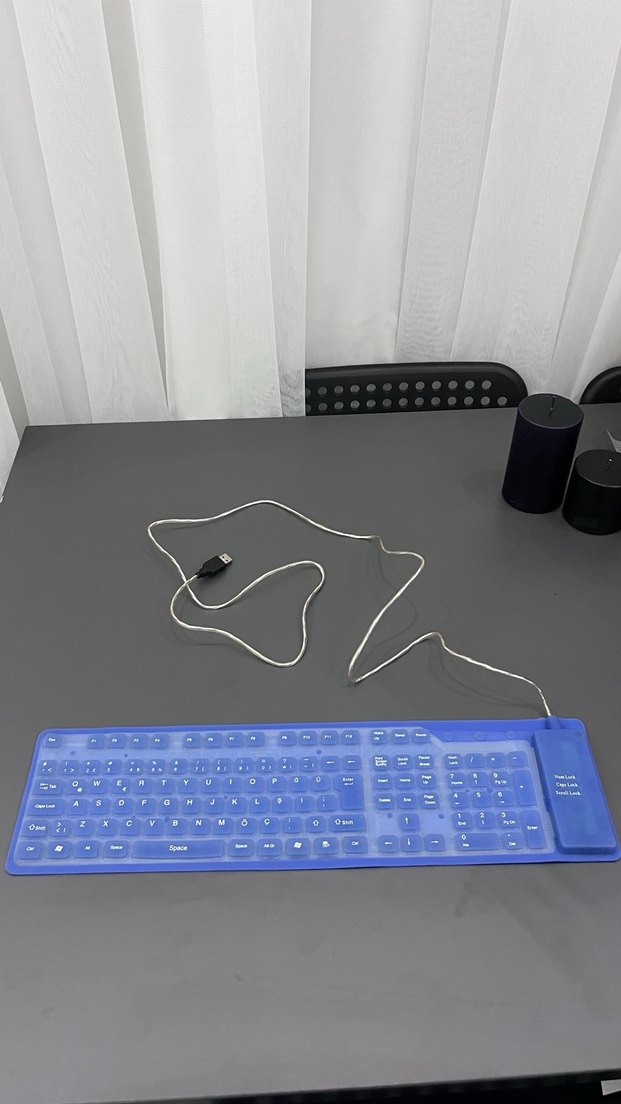 Kablolu, koyu mavi renkte, sayısal tuş takımı bulunan ince tasarımlı silikon klavye. USB ile bağlanır. ⌨️ Tuşlara basması keyifli, yumuşak hissiyatlı. Kıvrılabilir. Rahatlıkla ıslak bezle silip temizleyebilirsiniz. Klavye çalışma testi yaptım. Sadece Shift tuşunu çalıştıramadım. Klavye ayarını yanlış yaptığım için mı yoksa temassızlık mı var bilmiyorum. Keyifli alışverişler dilerim.