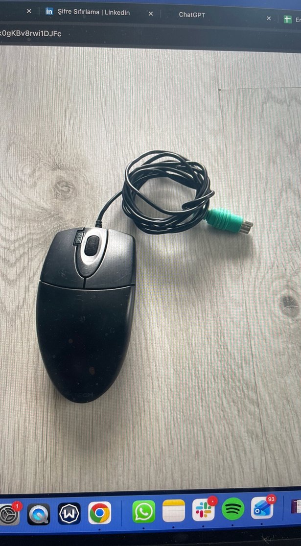 Siyah kablolu bilgisayar mouse'u, kaydırma tekerleği ve PS/2 bağlantı ile masaüstü kullanıma uygundur. ️