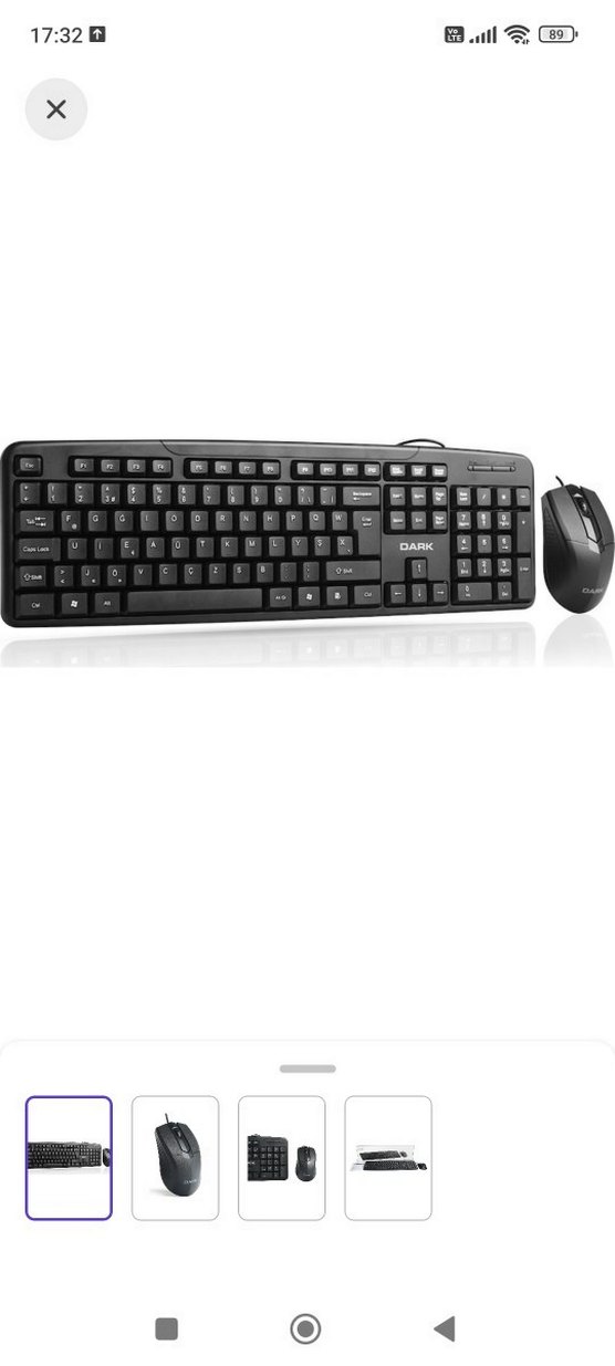Tam düzenli, sayısal tuş takımlı ve fonksiyon tuşlu kablolu siyah Dark klavye ve mouse seti. ️