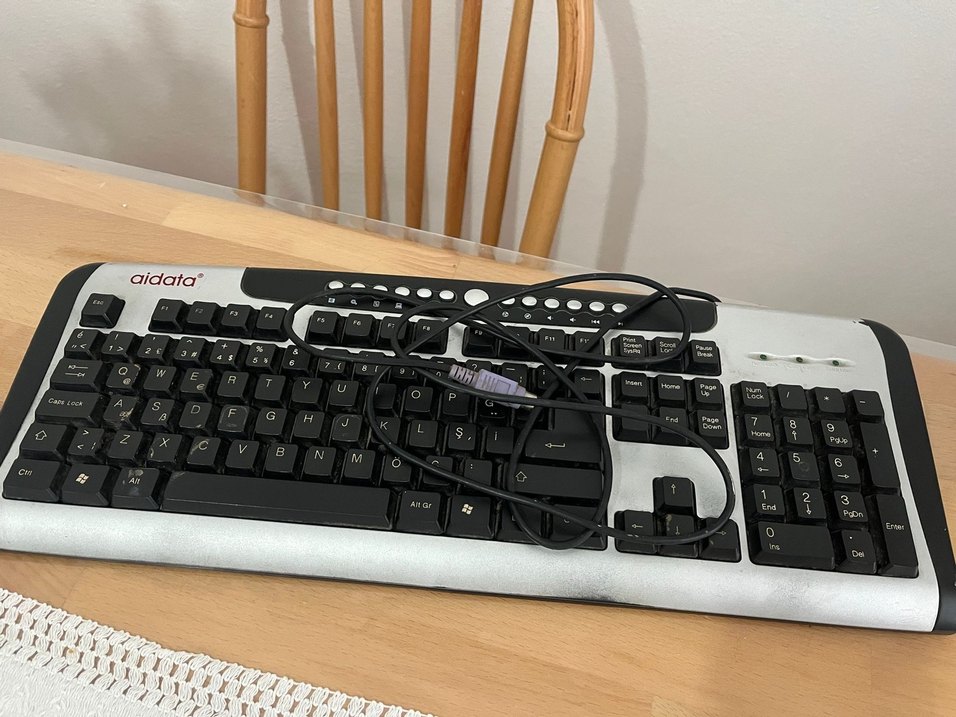 Kablolu, standart düzenli siyah-gri klavye, PS/2 bağlantı noktasına sahip. ⌨️