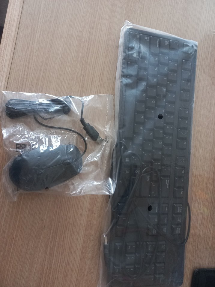sıfır ürün. Kablolu siyah klavye ve mouse seti, plastik ambalajda. Klavye standart tuşlara sahip, mouse kablolu bağlantılıdır. ️