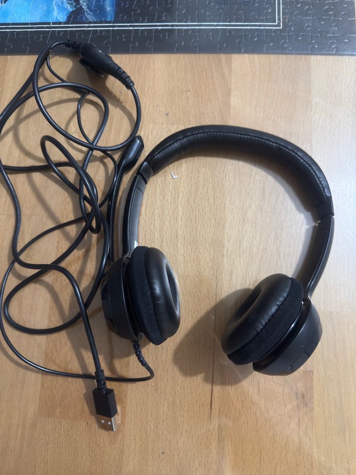 USB bağlantılı, yumuşak pedli başlık ve kulaklıkları olan siyah kablolu kulaklık