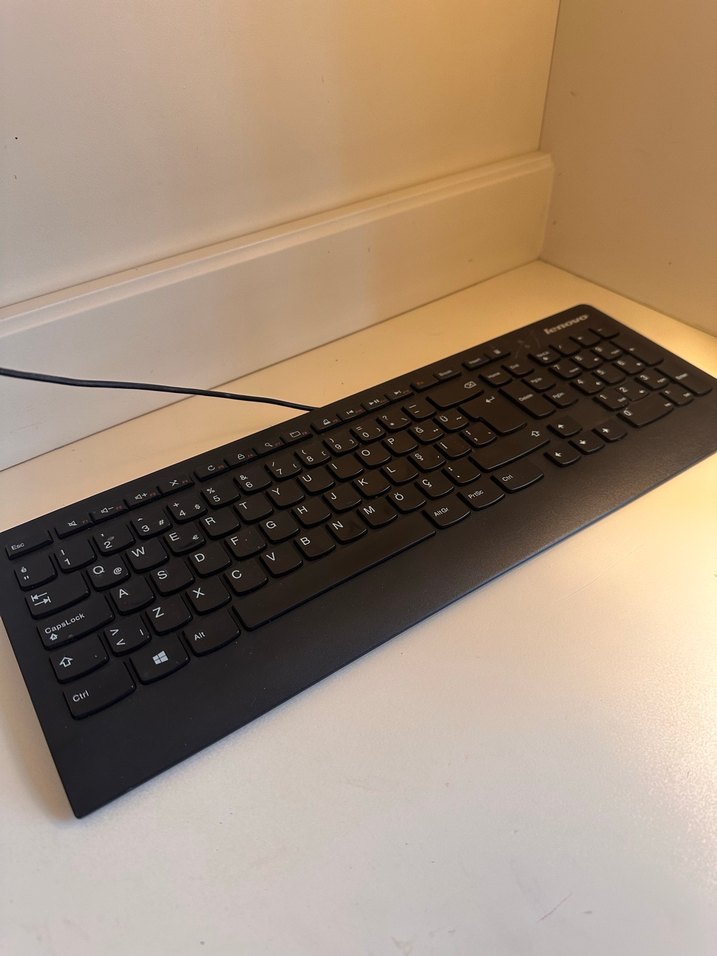 Lenovo marka, tam düzen sayısal tuş takımlı ve kablolu bağlantıya sahip siyah klavye. Ofis ortamına uygun sade tasarım. ⌨️