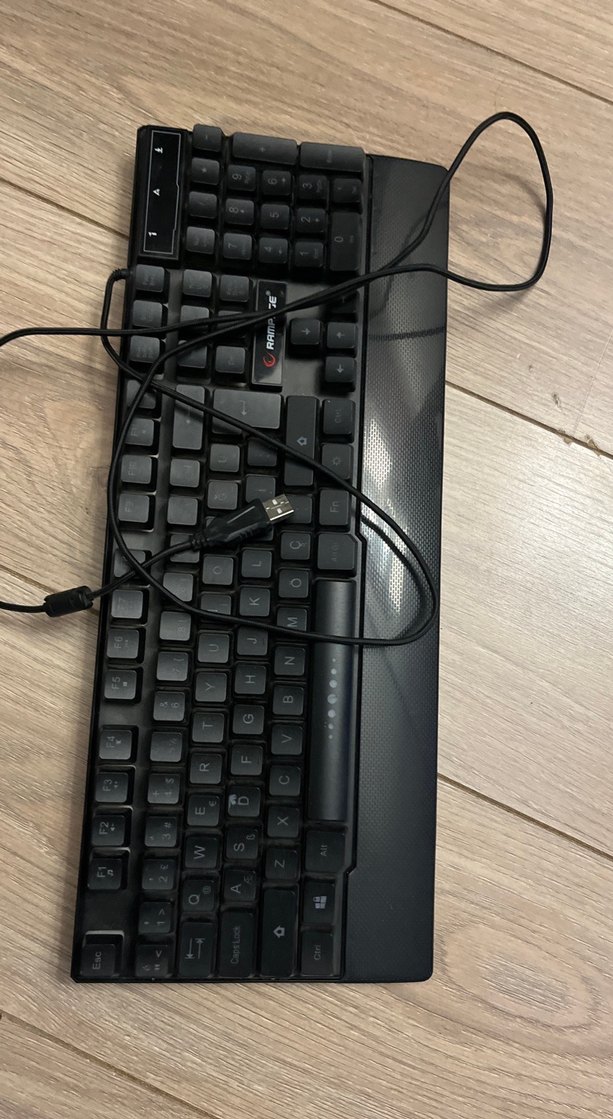 Tam düzenli, sayısal tuş takımlı siyah kablolu mekanik klavye, sağlam tuşlara sahiptir. Bağlantı için kablo mevcuttur. ⌨️