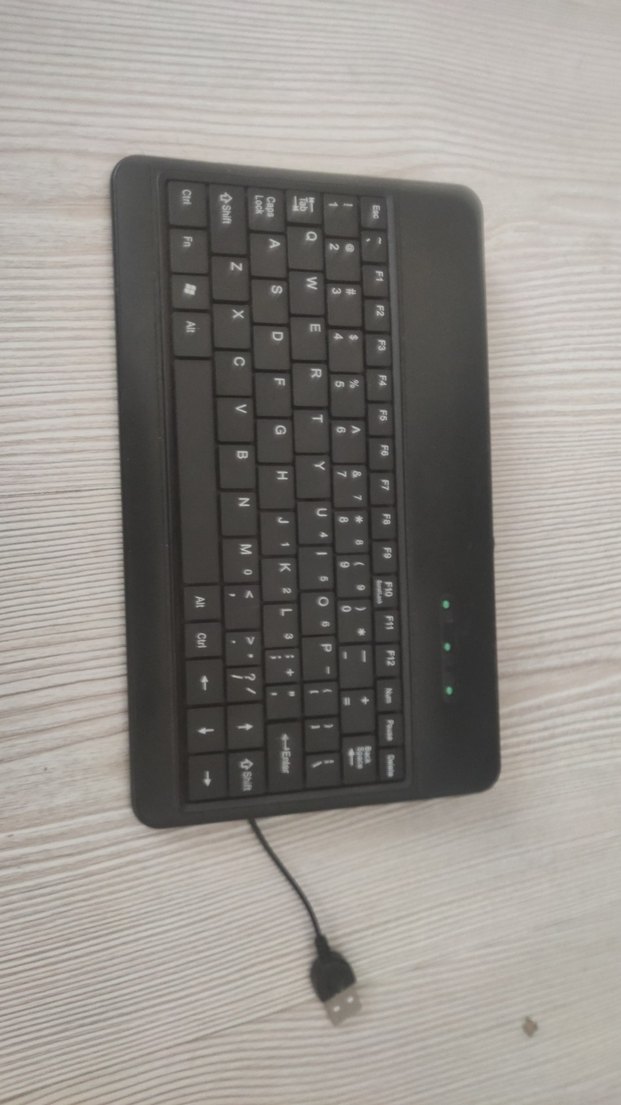 Kablolu, siyah mini klavye, ince tasarım ve gösterge ışıkları ile. Sınırlı alanlarda verimli yazma için uygundur. ⌨️
