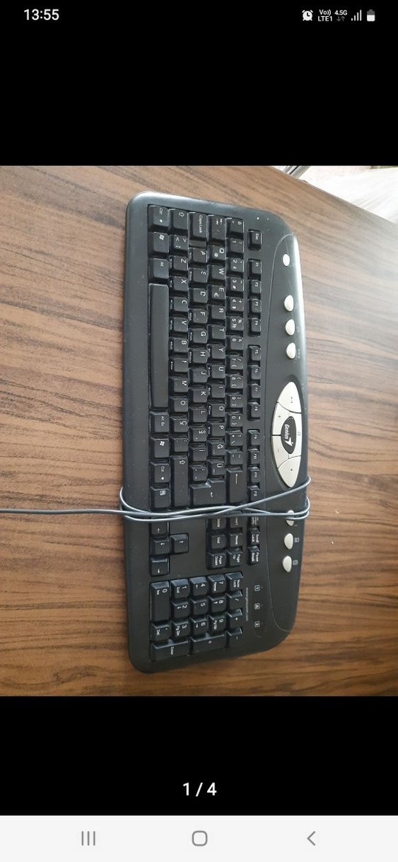 Tam tuş takımı ve sayısal tuş takımı içeren, ek fonksiyon tuşlarına sahip kablolu siyah klavye. Koyu renkli ve kompakt tasarım. ⌨️