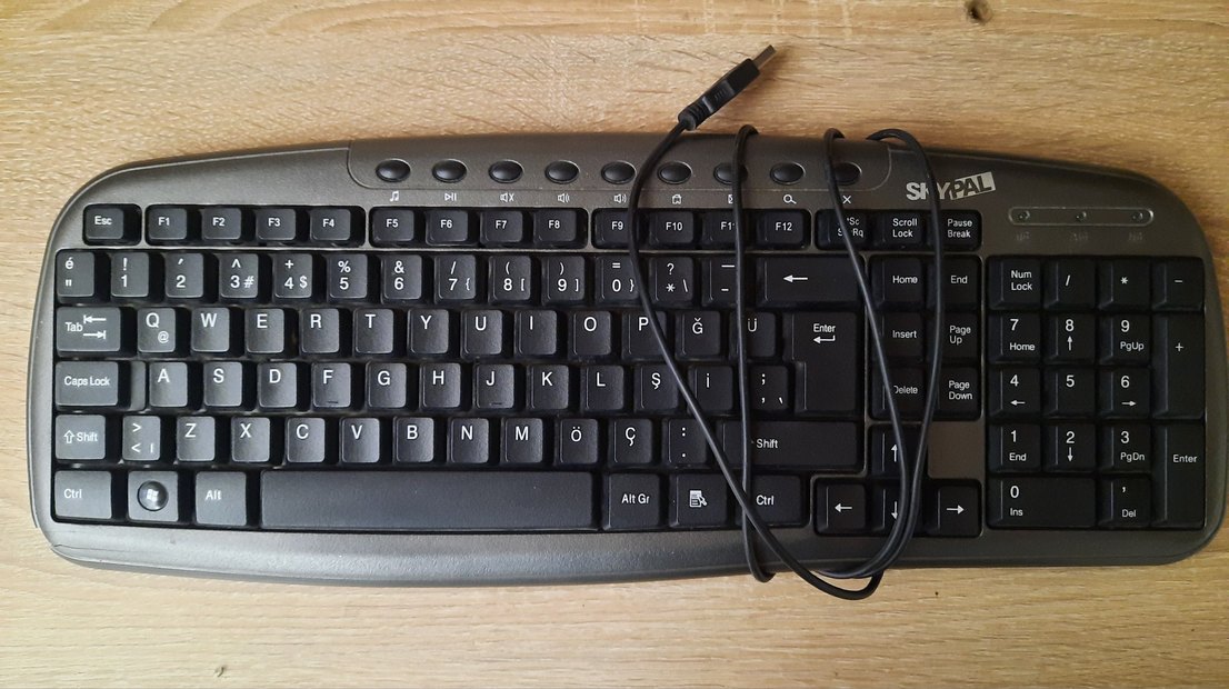 Kablolu bağlantıya sahip siyah Q klavye, Türkçe karakterler ve fonksiyon tuşları içerir. Multimedya tuşları mevcuttur. köşesinde Bi kırık var fotorafta belli edilmiştir çalışıyor durumda pazarlık yapılır soru sorabilirsiniz fotorafta görüldüğü gibidir temiz ve sağlam Bi şekilde kargolanacaktir