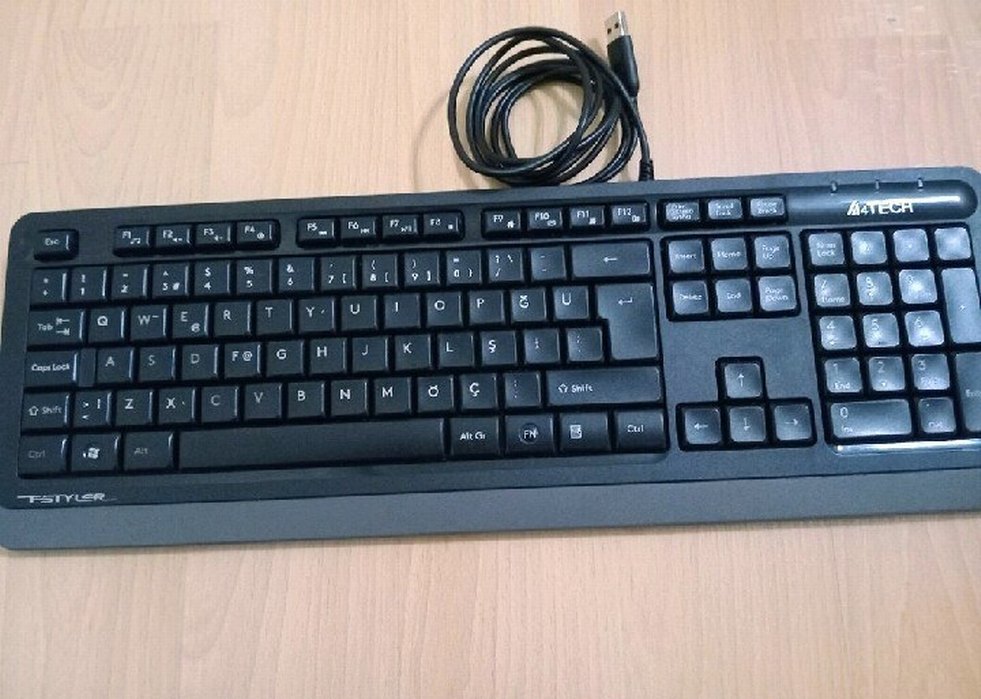 Kablolu siyah klavye, Türkçe Q düzeni, standart fonksiyon tuşları ve sayısal tuş takımı içerir. USB bağlantılıdır. ⌨️