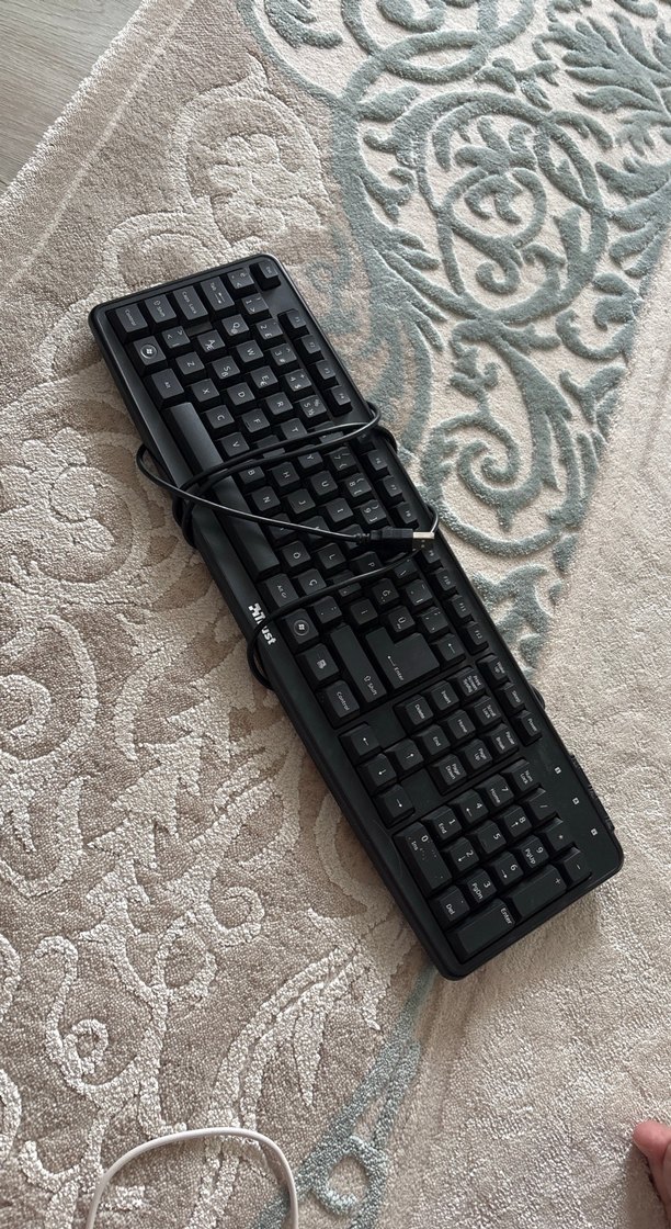 Günlük yazma işleri için uygun, standart düzenli, siyah kablolu klavye. USB bağlantılı ve koyu renk tuşlara sahip. ⌨️