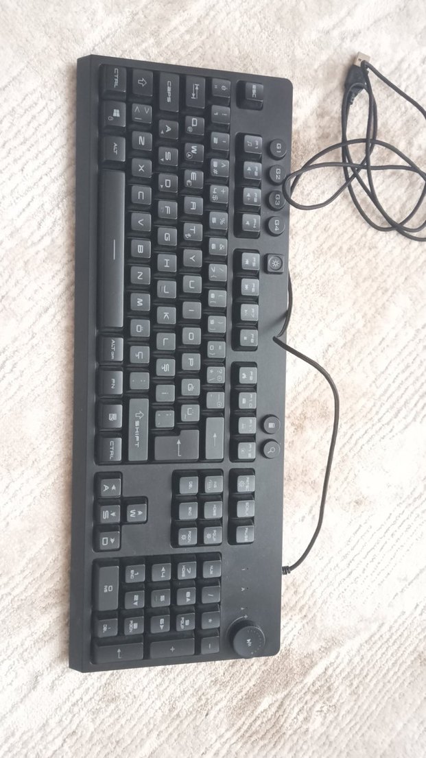 Kablolu, siyah renkli standart düzen ve multimedya tuşlarına sahip klavye. Dayanıklı tasarım, günlük kullanım için uygun. ⌨️