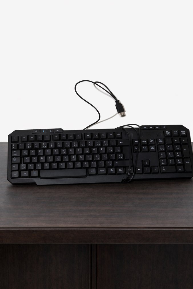 USB kablolu, tam tuş takımlı siyah klavye, standart kullanıma uygun.