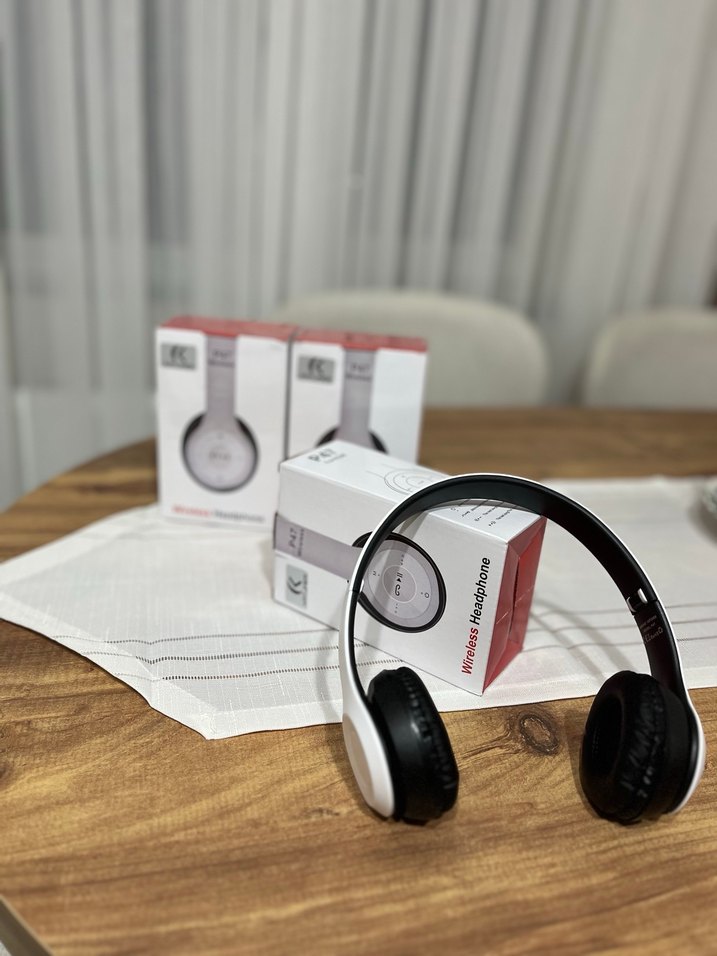 Konforlu yastıklı kulak pedlerine sahip beyaz-gri kablosuz kulaklık. Günlük kullanım için uygundur.