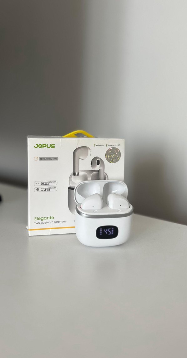 2-3 kez kullanıldı sadece.Beyaz, dijital ekranlı kompakt şarj kutusuna sahip kablosuz Bluetooth kulaklık. iOS ve Android uyumludur.