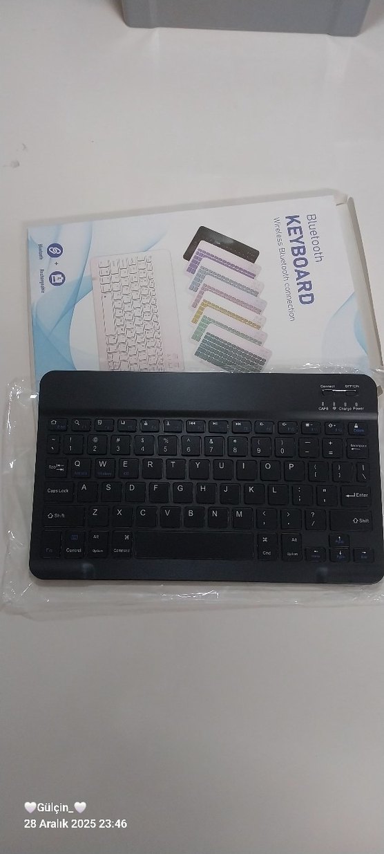Bluetooth ile bağlanan siyah kablosuz klavye, kompakt tuşlara sahiptir ve çeşitli cihazlarla uyumludur. ⌨️