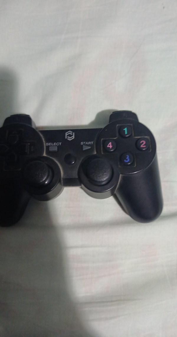 Numaralı tuşlar ve çift analog çubuklara sahip kablosuz PlayStation oyun kumandası .