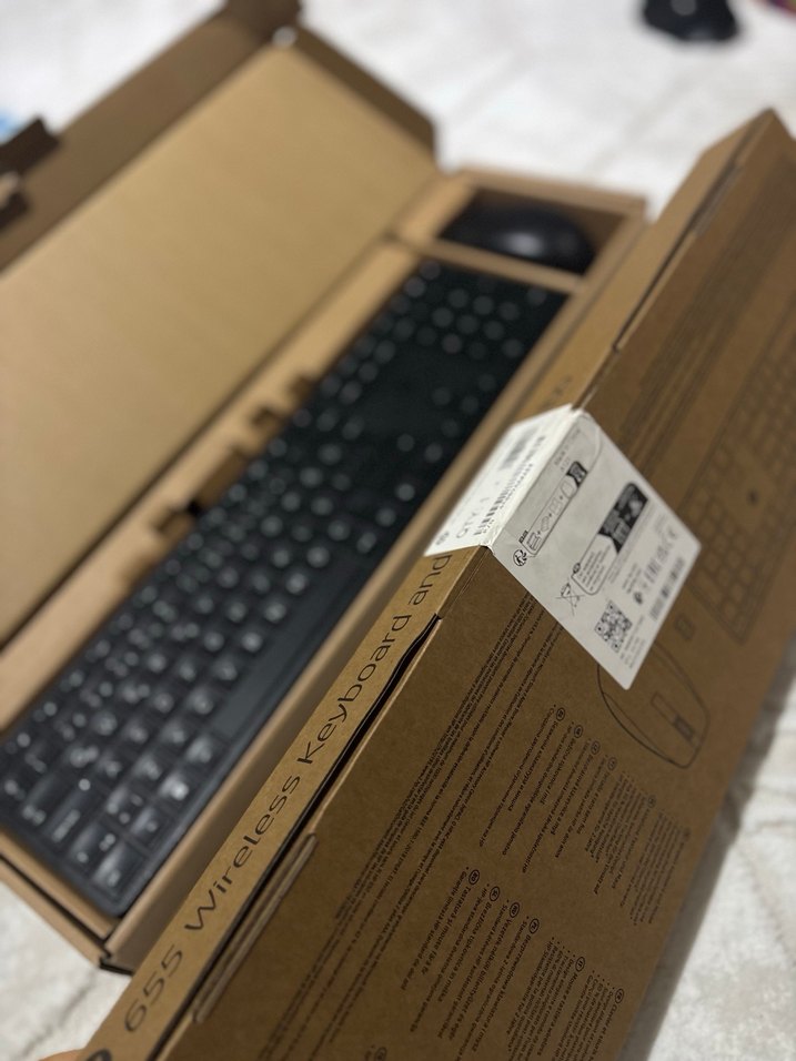 Koyu siyah renkte kablosuz klavye ve fare seti, çevre dostu karton kutularda paketlenmiştir. Kolay kullanım için kablosuz bağlantı sunar. ️2 adet bulunmakta diğer kutu etiketi açılmadı. Örnek açıldı