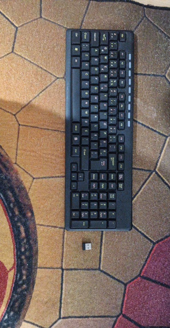 Kompakt USB alıcılı, koyu renkli siyah kablosuz klavye. Rahat yazma için uygundur. ⌨️
