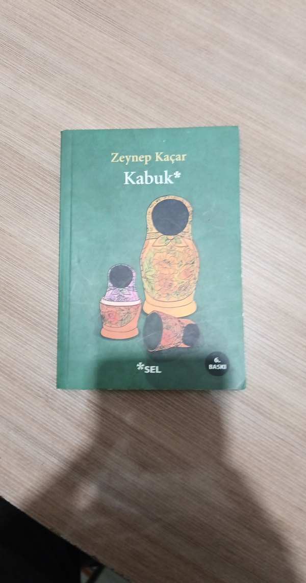 Zeynep Kaçar'ın Kabuk adlı kitabı, yeşil kapak ve matruşka figürleri içerir.