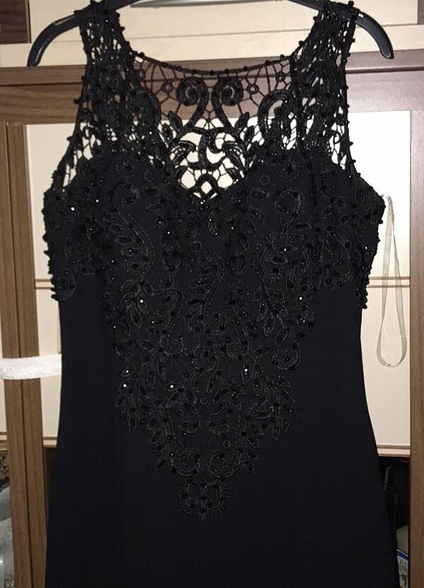 Siyah boncuk işlemeli abiye 2 saatlik kullanılmıştır kuru temizleme yapılması lazım etek uçları yere değdiği için çok ağır duruşu vardır arkasında tülden kuyruğu vardır etiketi 40 beden ama 38 beden uyumludur esnek kumaş değildir toktur boyum 163 cm giydiğimde kilom 56-58 arasıydi ona göre alabilirsiniz elbisenin omuZdan boyu 155cm arka kısmı daha uzun ve kuyruğu vardır tülden şuan 65 kiloyum olmuyor mecbur satıyorum
