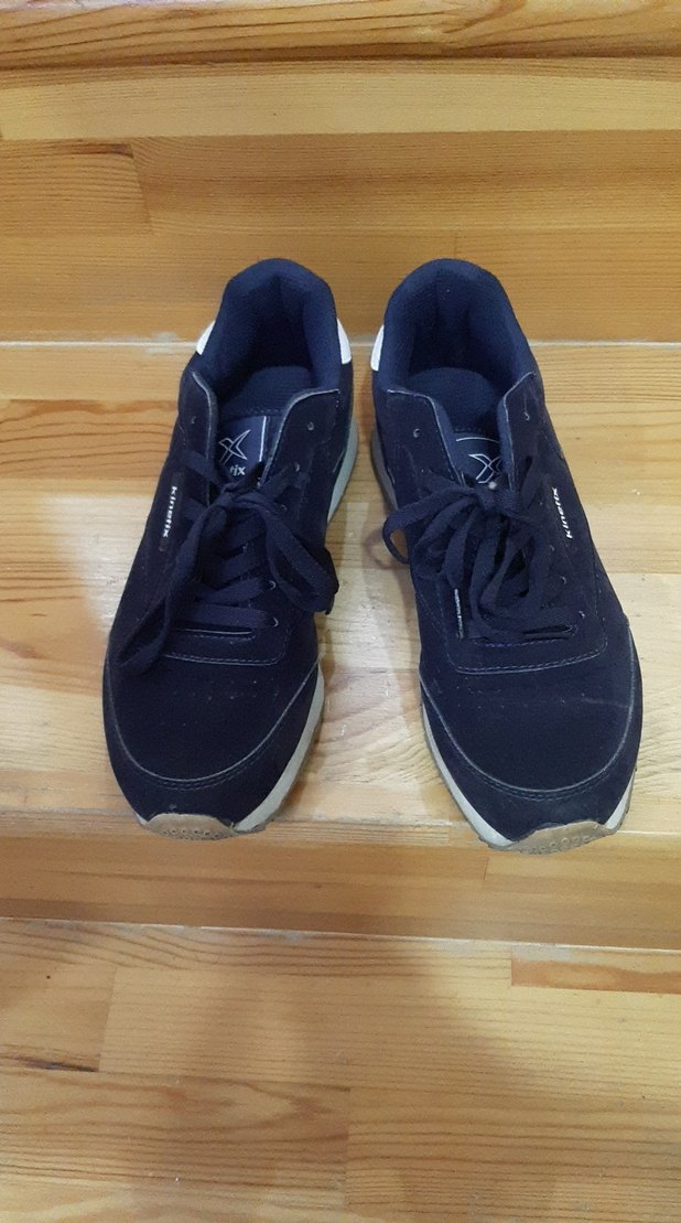 Kinetix marka lacivert kadın spor ayakkabısı, bağcıklı ve dolgu topuklu, dayanıklı kauçuk materyalden üretilmiştir.
