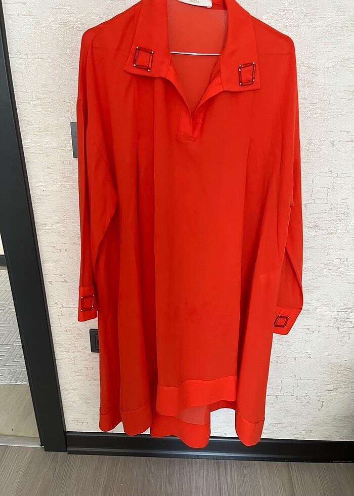 Az kullanlldı önü kısa arkası uzun geniş kesim tesettüre uygun şifon gömlek söküğü yırtıği defosu yoktur sadece kolunda bir tane boncuk düşmüş oda belli olmuyor çok kaliteli ve şık bir model