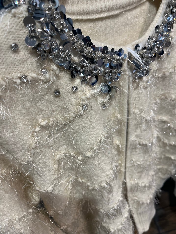 Taşlı angora krem rengi hırka